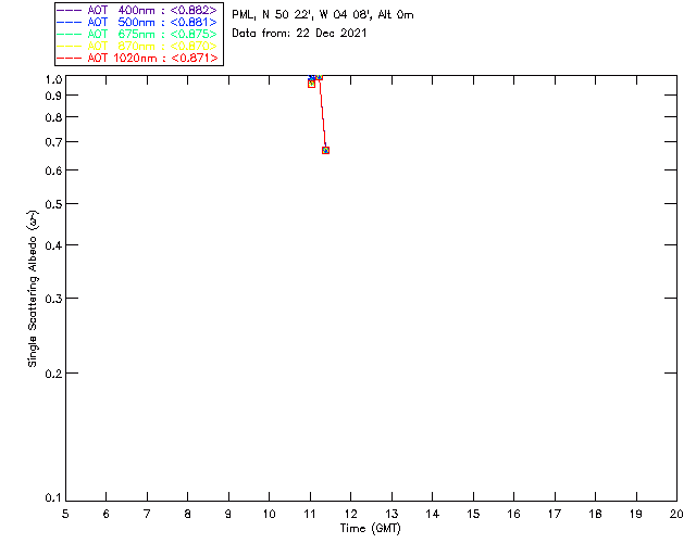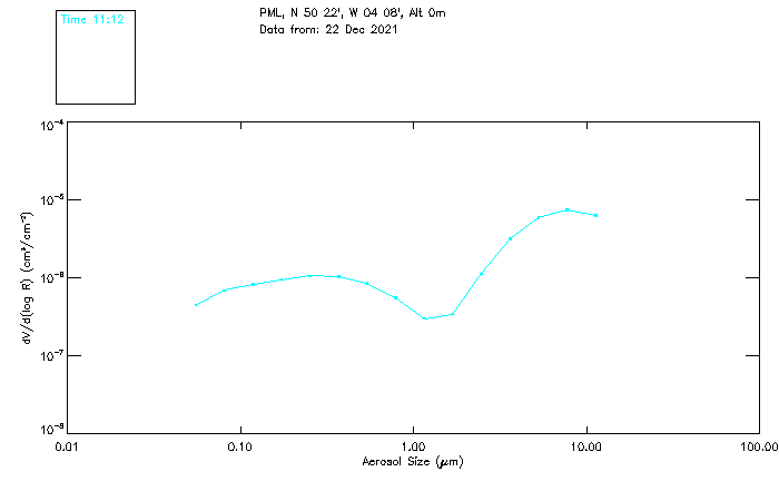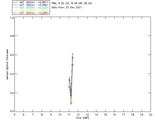 In May 2001 a PREDE POM01-L was installed on the roof of the Plymouth Marine Laboratory to continue the atmospheric correction research of the PML Remote Sensing Group. This was to replace the AERONET CIMEL sunphotometer situated at Rame Head which was decommissioned in 1999. The instrument operates at 7 wavelengths (315, 400, 500, 670, 870, 940 and 1020nm) and scans at pre-set angles away from the solar disk to determine, using the inversion code of Nakajima et al. (2006), various properties of tiny particles called aerosols within the atmospheric column. From these measurements useful atmospheric aerosol parameters such as the Aerosol Optical Thickness (AOT), aerosol size distribution and single scattering albedo can be calculated. Marine aerosols tend to be bigger (D > 1µm) than those generated over the land (0.01 < D < 1µm) and are of a different chemical composition; marine aerosols are salt particles whereas terrestrial aerosols are sulphate compounds.