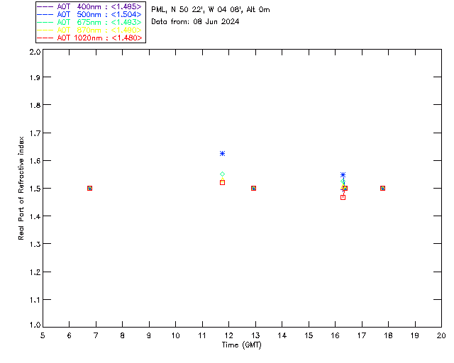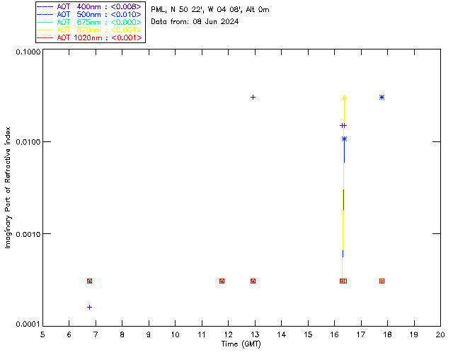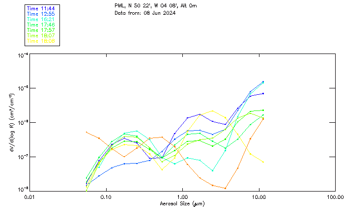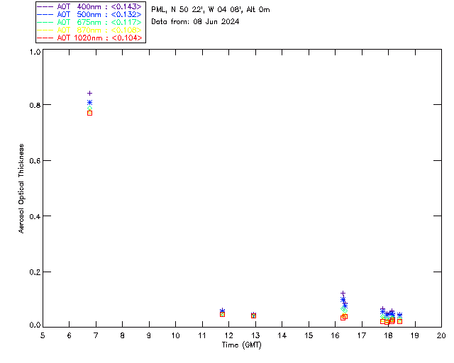 In May 2001 a PREDE POM01-L was installed on the roof of the Plymouth Marine Laboratory to continue the atmospheric correction research of the PML Remote Sensing Group. This was to replace the AERONET CIMEL sunphotometer situated at Rame Head which was decommissioned in 1999. The instrument operates at 7 wavelengths (315, 400, 500, 670, 870, 940 and 1020nm) and scans at pre-set angles away from the solar disk to determine, using the inversion code of Nakajima et al. (2006), various properties of tiny particles called aerosols within the atmospheric column. From these measurements useful atmospheric aerosol parameters such as the Aerosol Optical Thickness (AOT), aerosol size distribution and single scattering albedo can be calculated. Marine aerosols tend to be bigger (D > 1µm) than those generated over the land (0.01 < D < 1µm) and are of a different chemical composition; marine aerosols are salt particles whereas terrestrial aerosols are sulphate compounds.
