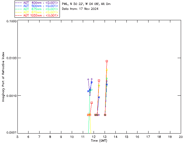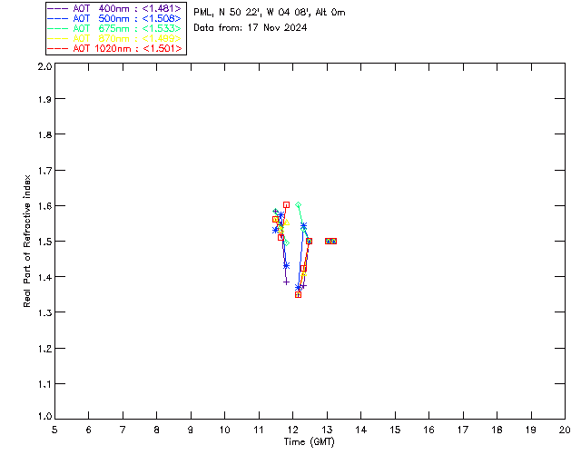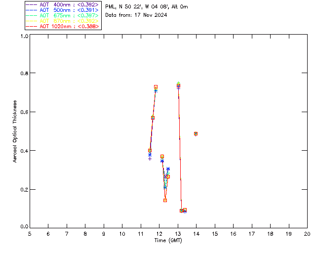 In May 2001 a PREDE POM01-L was installed on the roof of the Plymouth Marine Laboratory to continue the atmospheric correction research of the PML Remote Sensing Group. This was to replace the AERONET CIMEL sunphotometer situated at Rame Head which was decommissioned in 1999. The instrument operates at 7 wavelengths (315, 400, 500, 670, 870, 940 and 1020nm) and scans at pre-set angles away from the solar disk to determine, using the inversion code of Nakajima et al. (2006), various properties of tiny particles called aerosols within the atmospheric column. From these measurements useful atmospheric aerosol parameters such as the Aerosol Optical Thickness (AOT), aerosol size distribution and single scattering albedo can be calculated. Marine aerosols tend to be bigger (D > 1µm) than those generated over the land (0.01 < D < 1µm) and are of a different chemical composition; marine aerosols are salt particles whereas terrestrial aerosols are sulphate compounds.