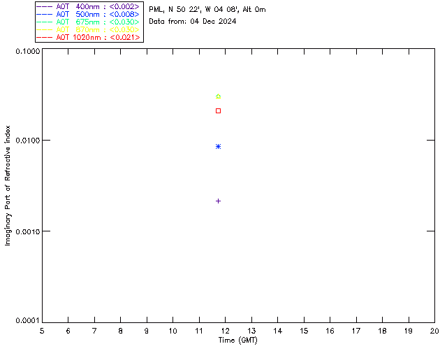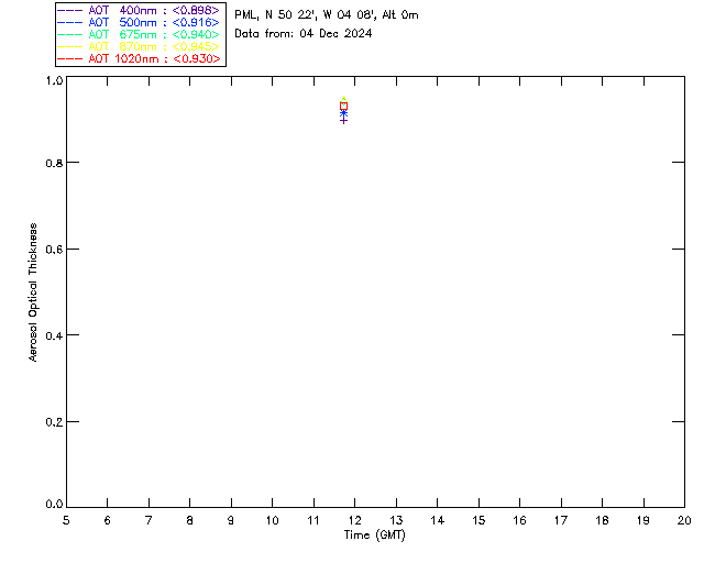 In May 2001 a PREDE POM01-L was installed on the roof of the Plymouth Marine Laboratory to continue the atmospheric correction research of the PML Remote Sensing Group. This was to replace the AERONET CIMEL sunphotometer situated at Rame Head which was decommissioned in 1999. The instrument operates at 7 wavelengths (315, 400, 500, 670, 870, 940 and 1020nm) and scans at pre-set angles away from the solar disk to determine, using the inversion code of Nakajima et al. (2006), various properties of tiny particles called aerosols within the atmospheric column. From these measurements useful atmospheric aerosol parameters such as the Aerosol Optical Thickness (AOT), aerosol size distribution and single scattering albedo can be calculated. Marine aerosols tend to be bigger (D > 1µm) than those generated over the land (0.01 < D < 1µm) and are of a different chemical composition; marine aerosols are salt particles whereas terrestrial aerosols are sulphate compounds.