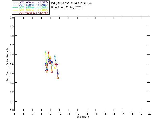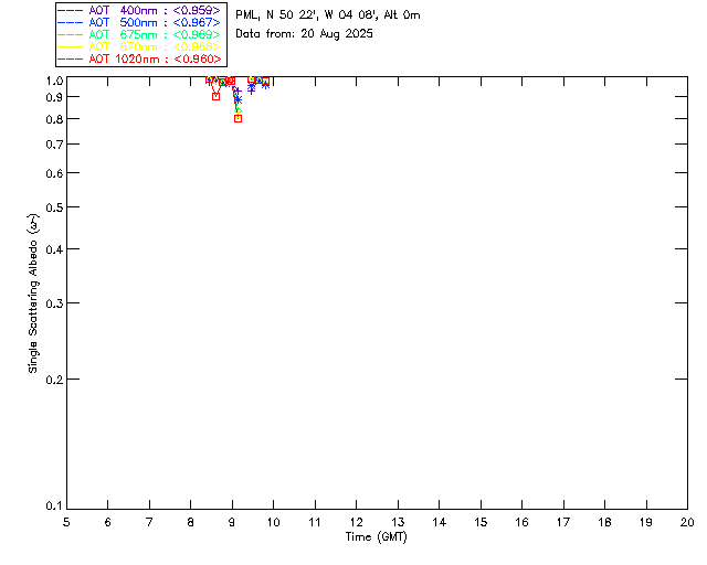 In May 2001 a PREDE POM01-L was installed on the roof of the Plymouth Marine Laboratory to continue the atmospheric correction research of the PML Remote Sensing Group. This was to replace the AERONET CIMEL sunphotometer situated at Rame Head which was decommissioned in 1999. The instrument operates at 7 wavelengths (315, 400, 500, 670, 870, 940 and 1020nm) and scans at pre-set angles away from the solar disk to determine, using the inversion code of Nakajima et al. (2006), various properties of tiny particles called aerosols within the atmospheric column. From these measurements useful atmospheric aerosol parameters such as the Aerosol Optical Thickness (AOT), aerosol size distribution and single scattering albedo can be calculated. Marine aerosols tend to be bigger (D > 1µm) than those generated over the land (0.01 < D < 1µm) and are of a different chemical composition; marine aerosols are salt particles whereas terrestrial aerosols are sulphate compounds.