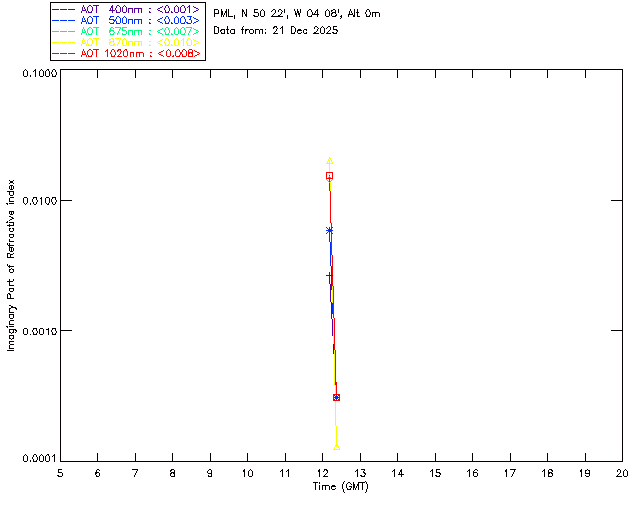 In May 2001 a PREDE POM01-L was installed on the roof of the Plymouth Marine Laboratory to continue the atmospheric correction research of the PML Remote Sensing Group. This was to replace the AERONET CIMEL sunphotometer situated at Rame Head which was decommissioned in 1999. The instrument operates at 7 wavelengths (315, 400, 500, 670, 870, 940 and 1020nm) and scans at pre-set angles away from the solar disk to determine, using the inversion code of Nakajima et al. (2006), various properties of tiny particles called aerosols within the atmospheric column. From these measurements useful atmospheric aerosol parameters such as the Aerosol Optical Thickness (AOT), aerosol size distribution and single scattering albedo can be calculated. Marine aerosols tend to be bigger (D > 1µm) than those generated over the land (0.01 < D < 1µm) and are of a different chemical composition; marine aerosols are salt particles whereas terrestrial aerosols are sulphate compounds.